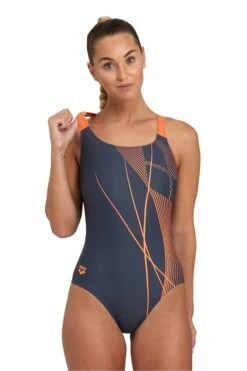 Arena Feel Womens Grey Branch Swim Pro Back Swimsuit