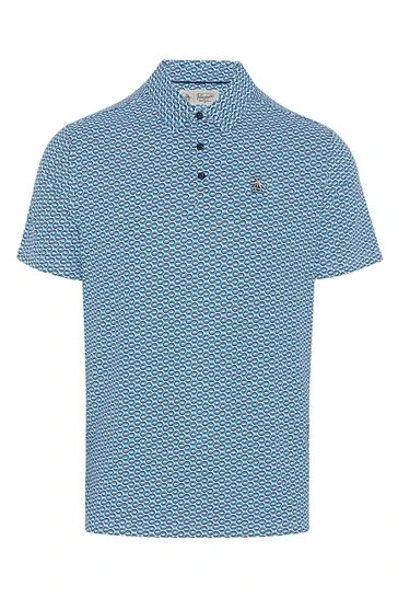 Original Penguin Golf Mens Blue All Over Heritage Micro Geo Print Polo Shirt