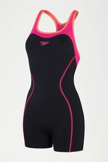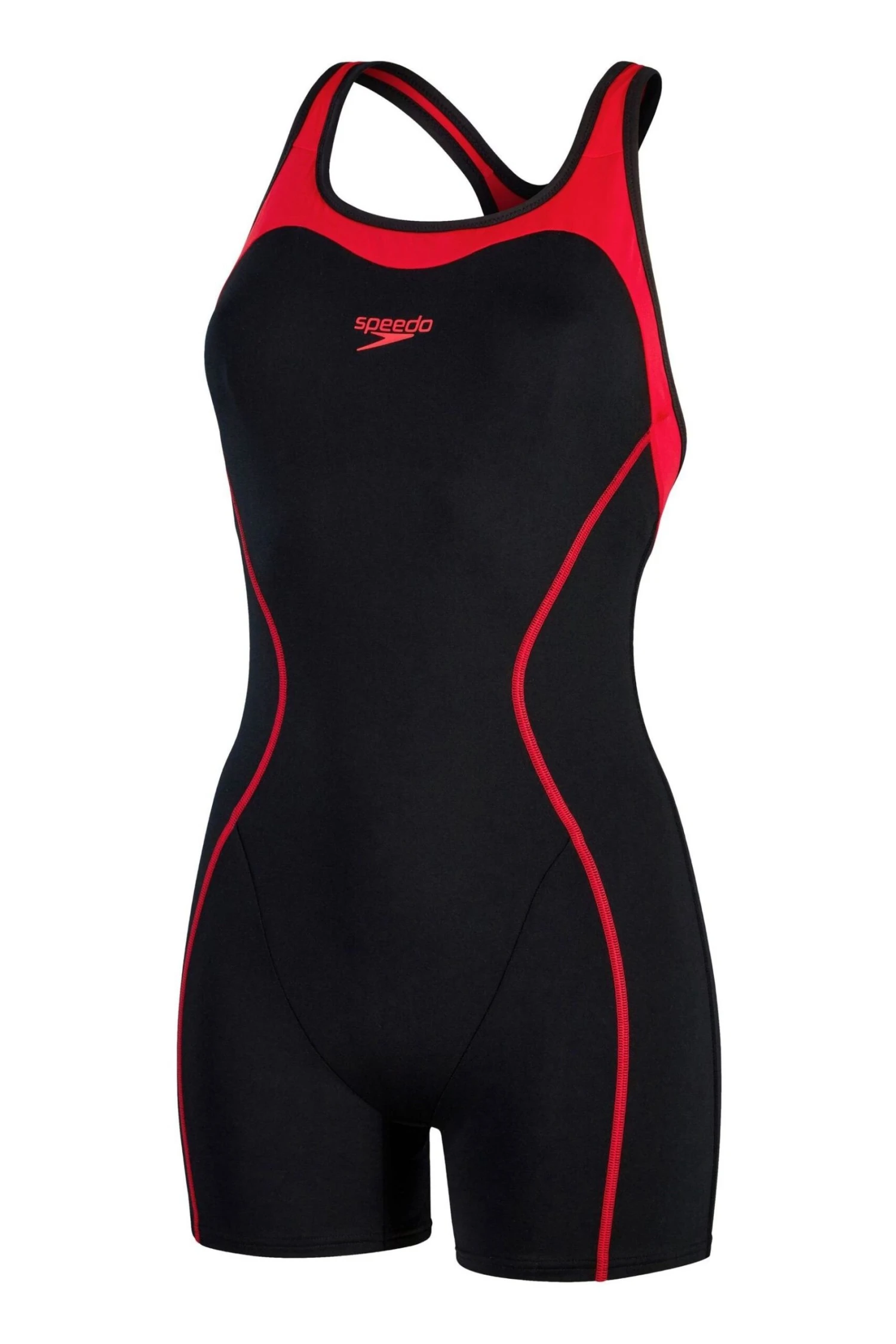 Speedo Womens Panel Legsuit-Negro/Rojo
